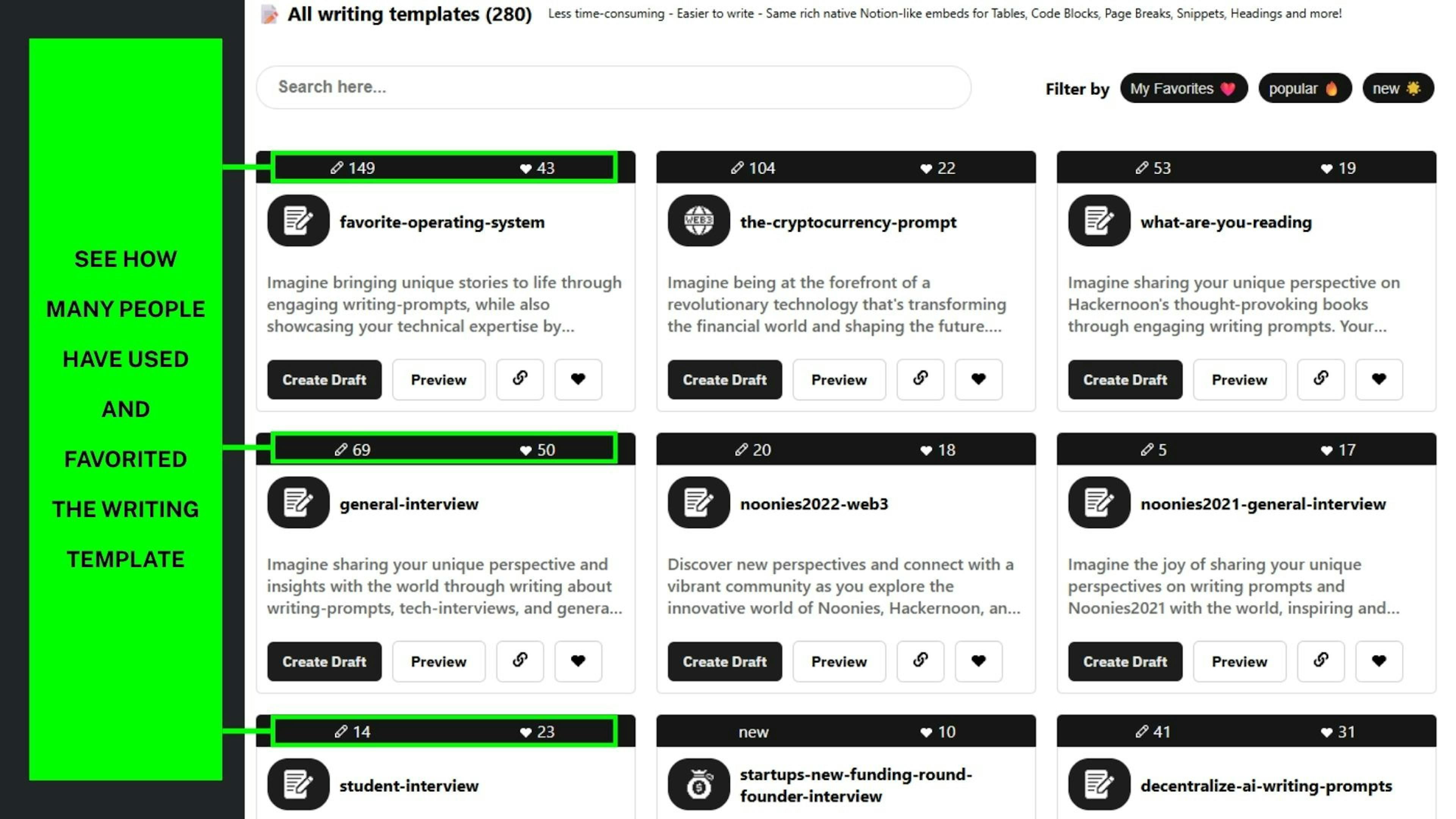 당신은 또한 볼 수 있습니다 얼마나 많은 사람들이 각 템플릿을 좋아하거나 사용했는지– 각 카드의 상단에 있습니다. 👇