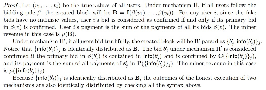 레마 8.3. 광부가 정직하게 메커니즘을 따른다고 가정합니다. 그런 다음 모든 사용자가 메커니즘 π에 따라 입찰 규칙 β를 따를 때의 결과는 모든 사용자가 메커니즘 π ‘에 따라 진실로 입찰 할 때 결과로 동일하게 분포됩니다.