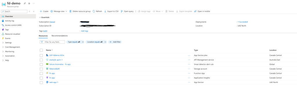 Azure 리소스(리소스 그룹: “fd-demo”):