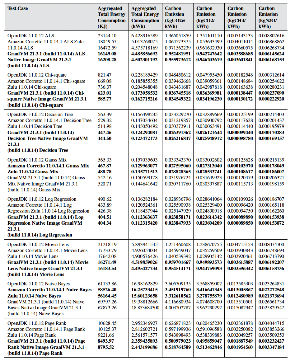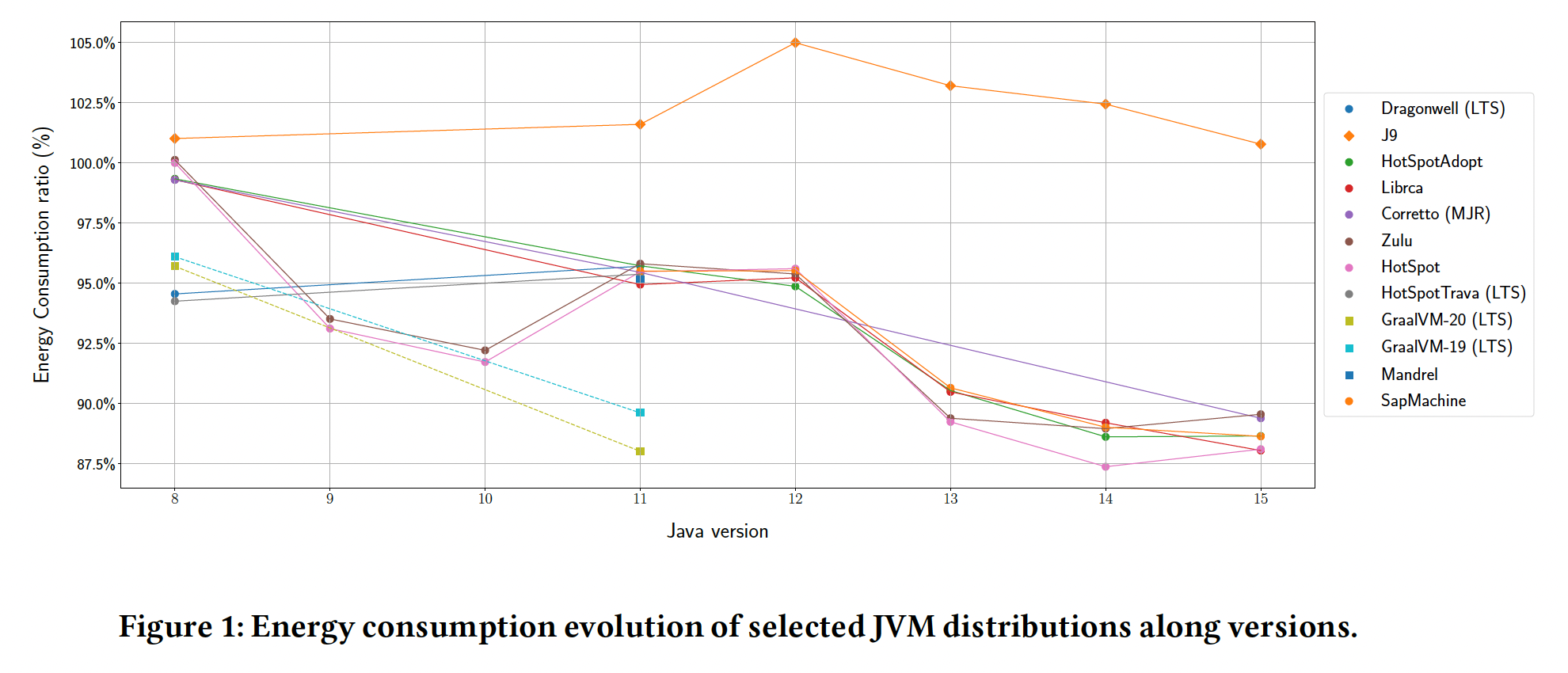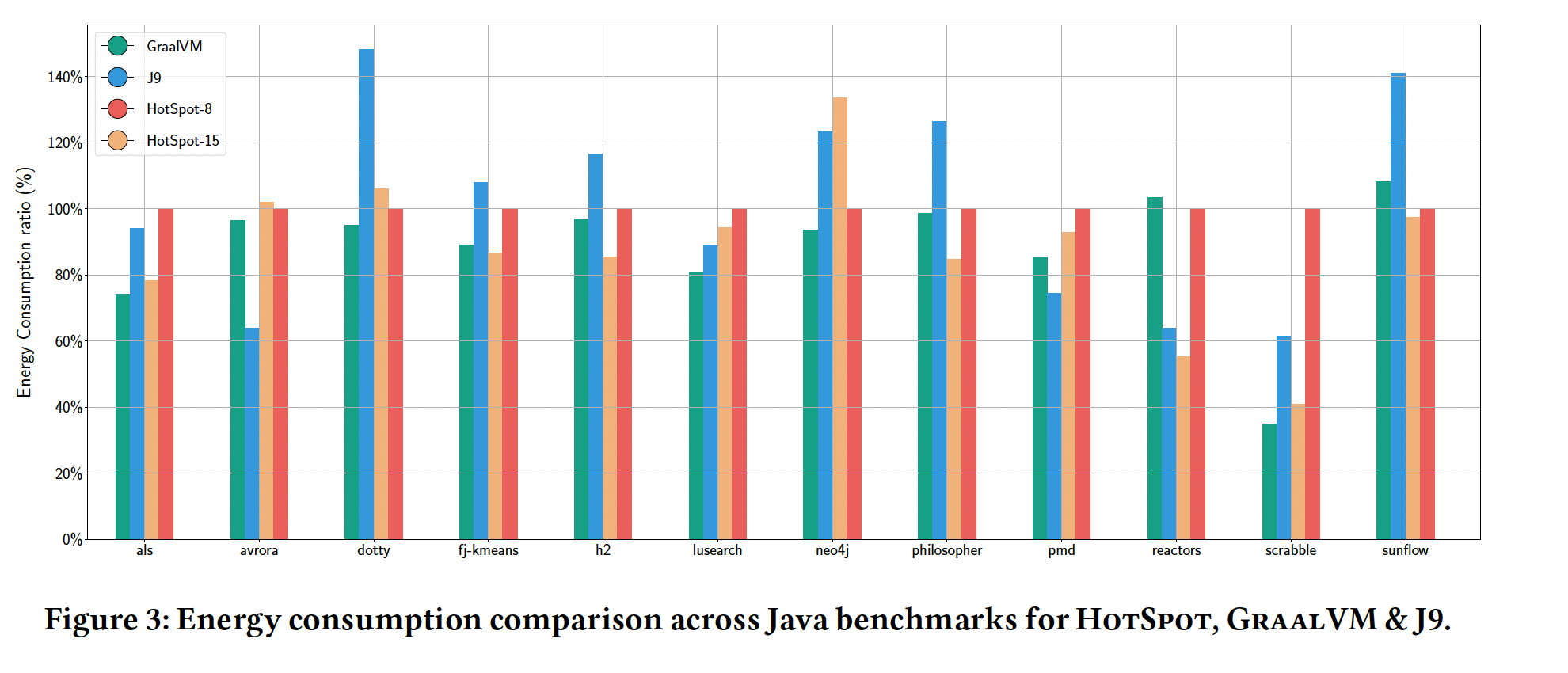 더욱이, 연구원들은 핫스팟 15와 같은 새로운 JVM이 일반적으로 핫스팟 8과 같은 이전 버전보다 더 나은 에너지 성능을 제공했지만 Graalvm은 지속적으로 눈에 띄었다. GraalVM은 장기 실행 작업에 최적화 된 JVMS와 비교할 때도 AOT 컴파일로 인해 에너지 비용이 낮아서 런타임 오버 헤드를 최소화했습니다.